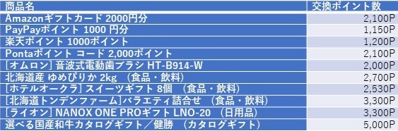 掲載商品は一部です。掲載されている商品のほかにも様々な商品と交換ができます。