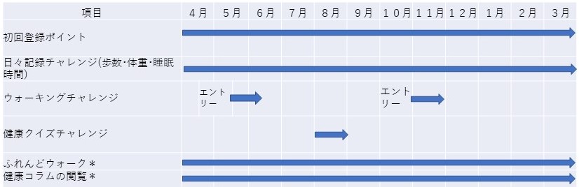 ウォーキングチャレンジ | ウォーキングラリーにエントリー | 500 | 他に付与対象要件有 |