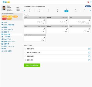 日々の記録チャレンジ(歩数・体重・睡眠時間) | 「日々の記録」から「歩数・体重・睡眠時間」を記録 | 1項目3/日 | 14日まで遡り入力可 |